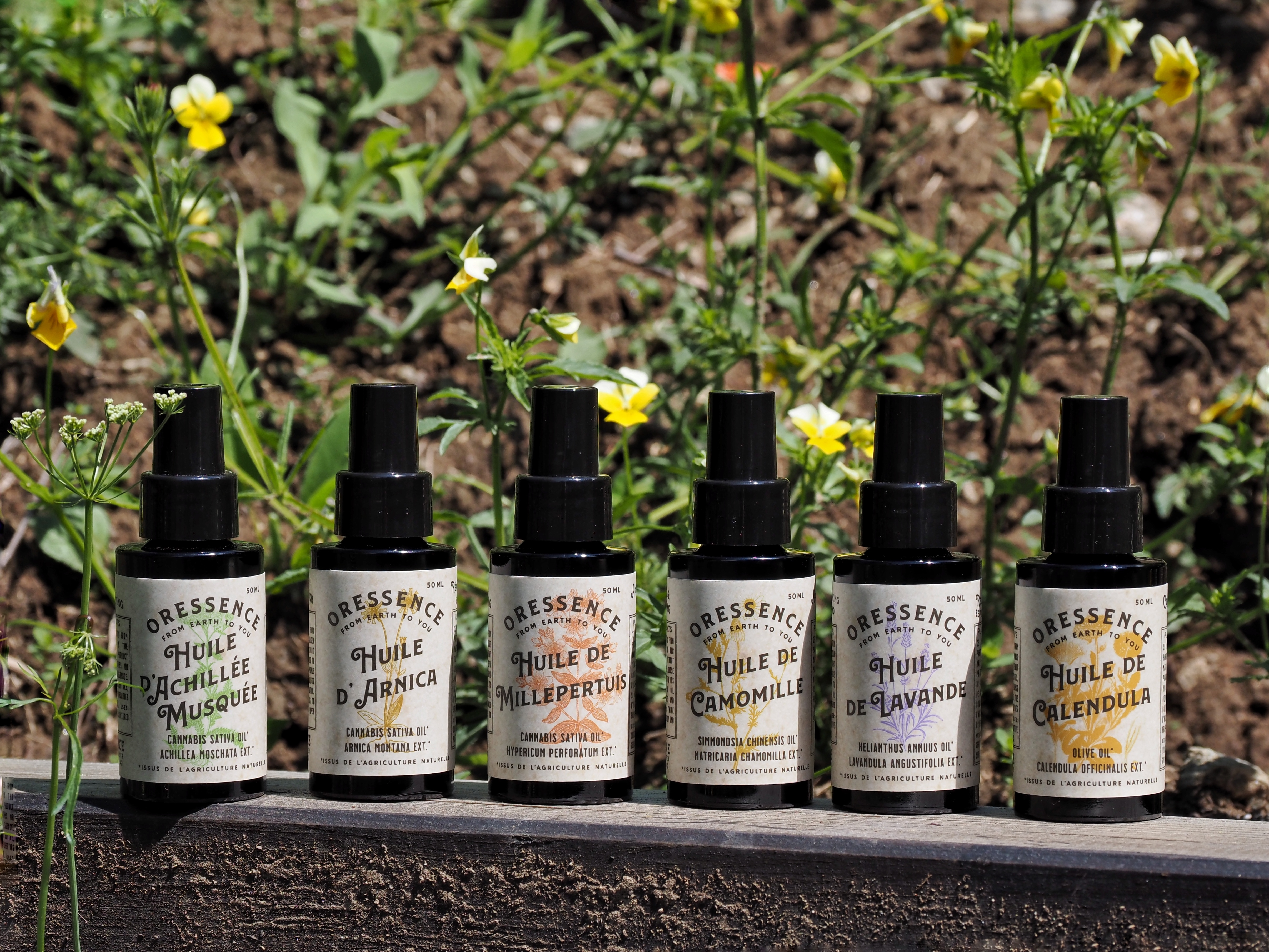 Macérats huileux à base de plantes des Alpes cultivées et cueillies selon la charte Bio Suisse.